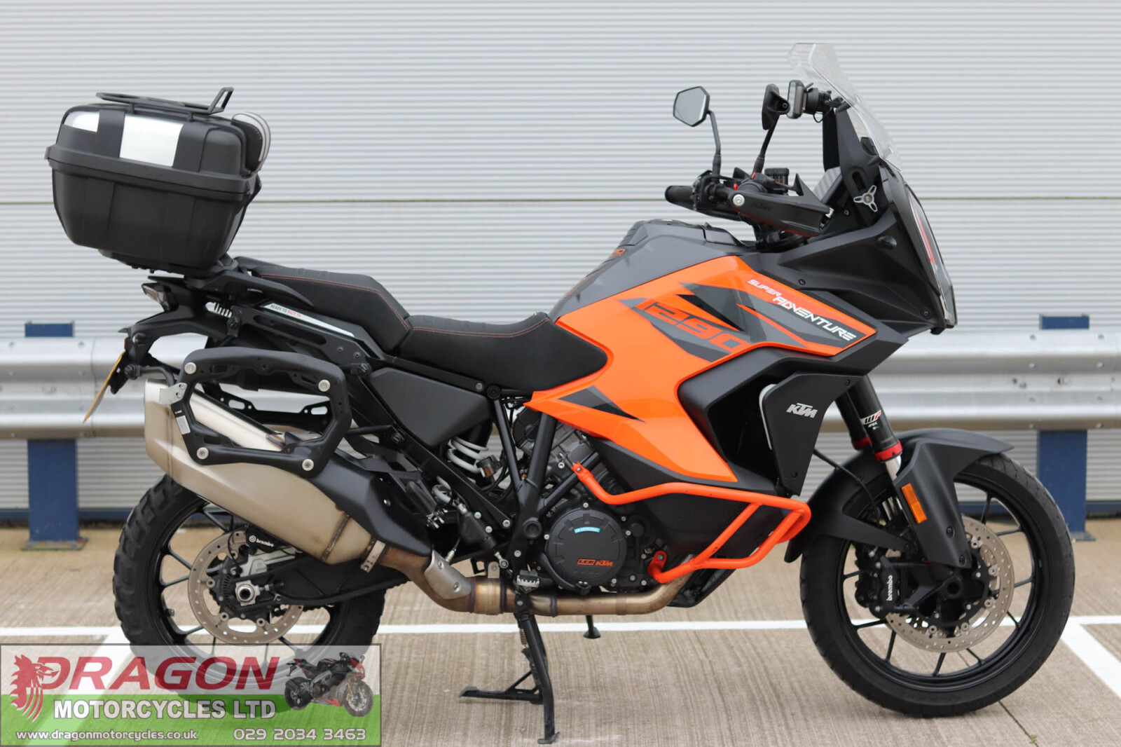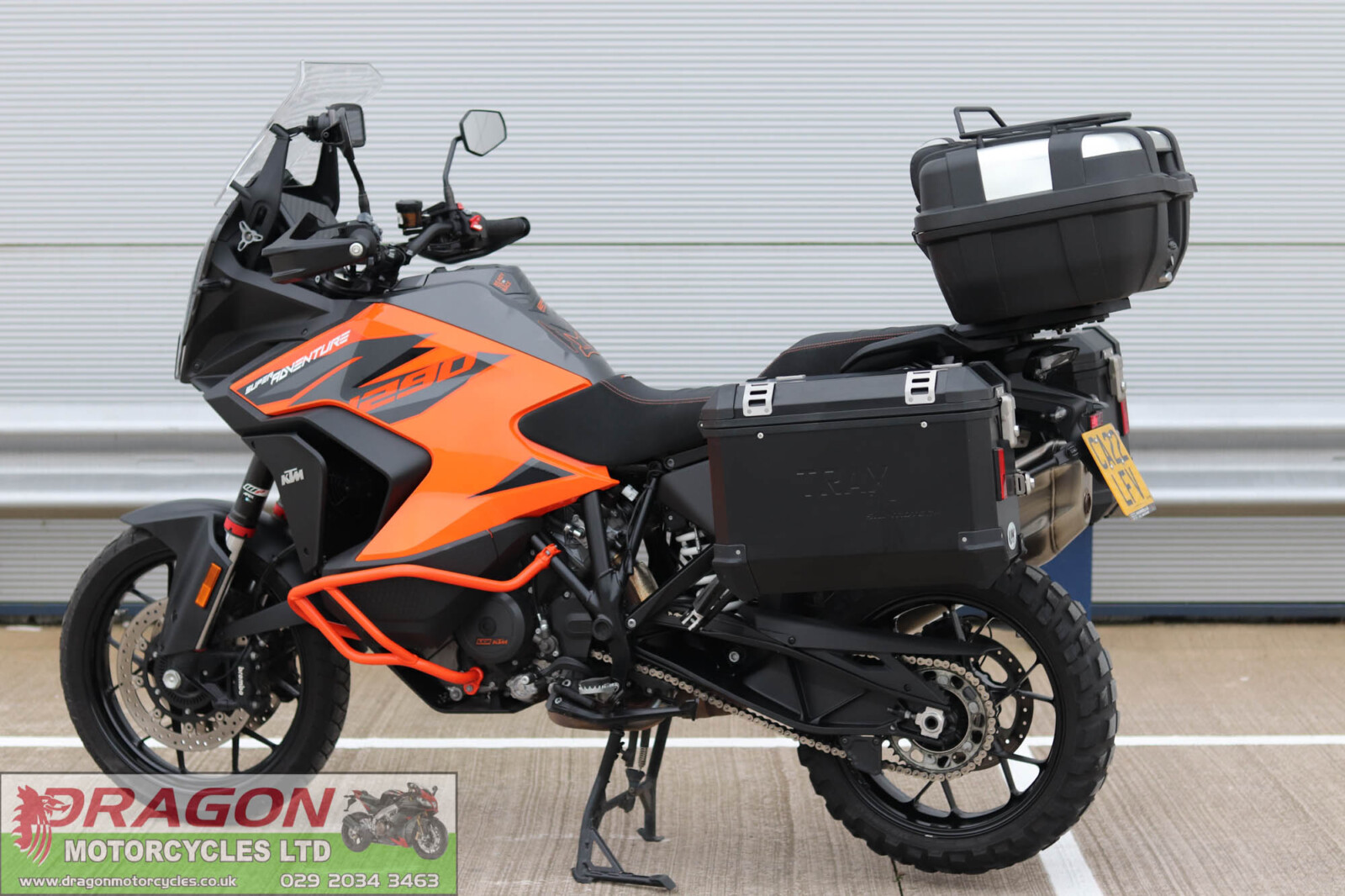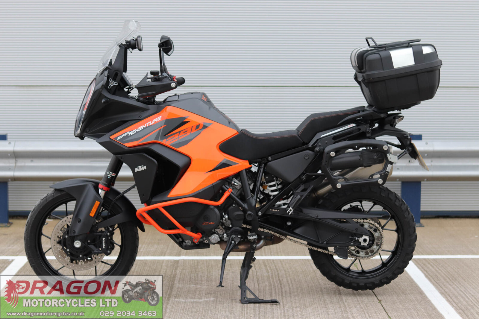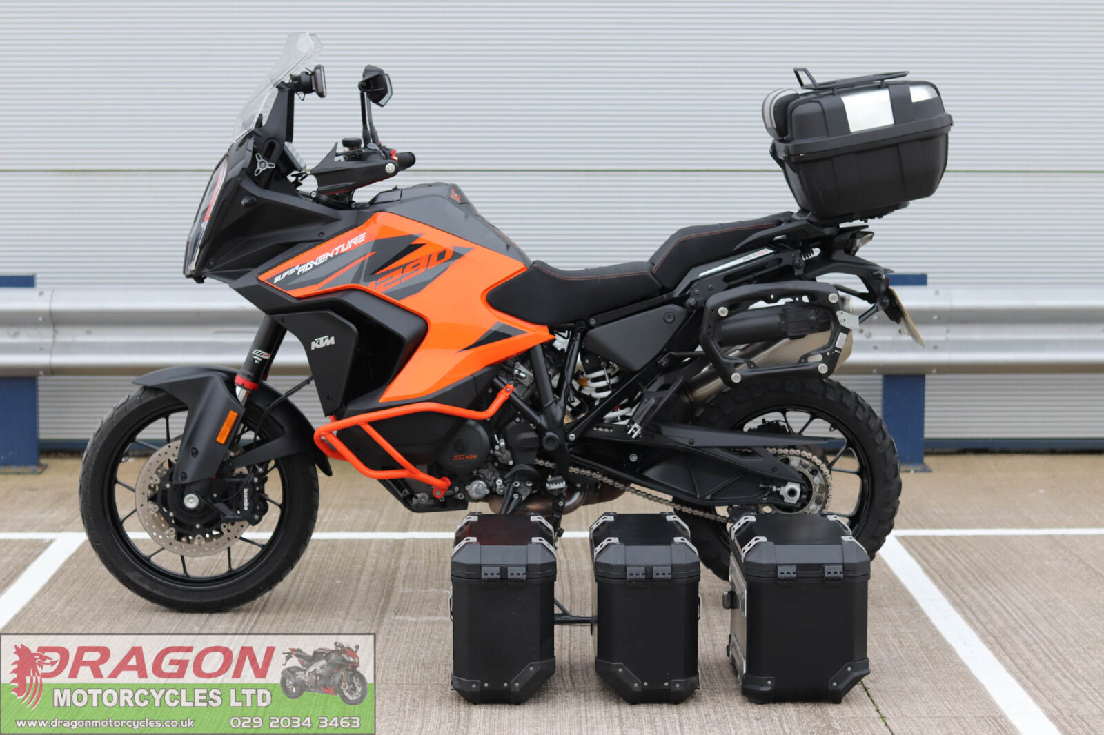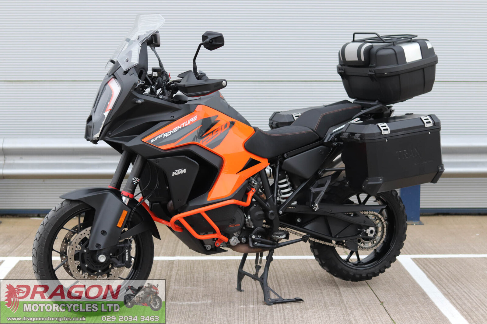 Dragon motorcycles are pleased to offer this KTM 1290 Super Adventure S. Presented in excellent condition showing just 11k miles on the clock from new. Totally unmolested, mostly standard and original with the added addition of upgraded Power Parts seat, colour coded engine bars, Tom Tom sat sav, Givi top box, SW-Motech quick release luggage rails, storage canister and panniers including an additional large capacity case. These really are a fantastic machine, factory fitted with WP electronic suspension, TC, quick shifter (up & down), TFT display, ABS brake, heated grips and so on. The bike is in great order all round all perishables are spot on - Additionally, will be sold freshly serviced/ fitted with a set of new tyres at point of retail. Supplied with document pack to include V5 logbook, service receipts, MOT's and 2 keys. Buy from us with confidence knowing each bike has been fully checked over and prepared at our workshops prior to sale completion. This 1290 wants for nothing bar a loving new owner.